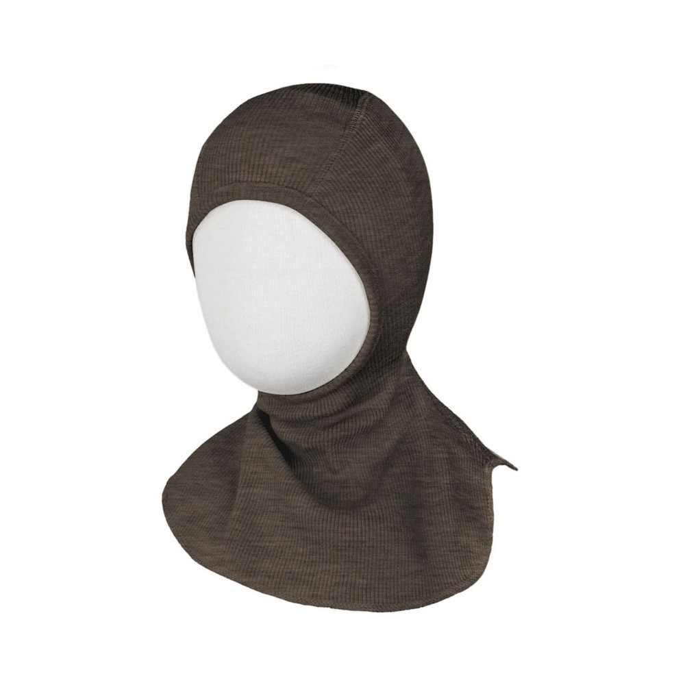 Die Mütze in Form einer Kapuze ist aus Merinowolle gestrickt und passt sich perfekt an den Kopf des Kindes an, bedeckt die Ohren gut und reicht weit genug nach unten, um den Hals gut zu bedecken.