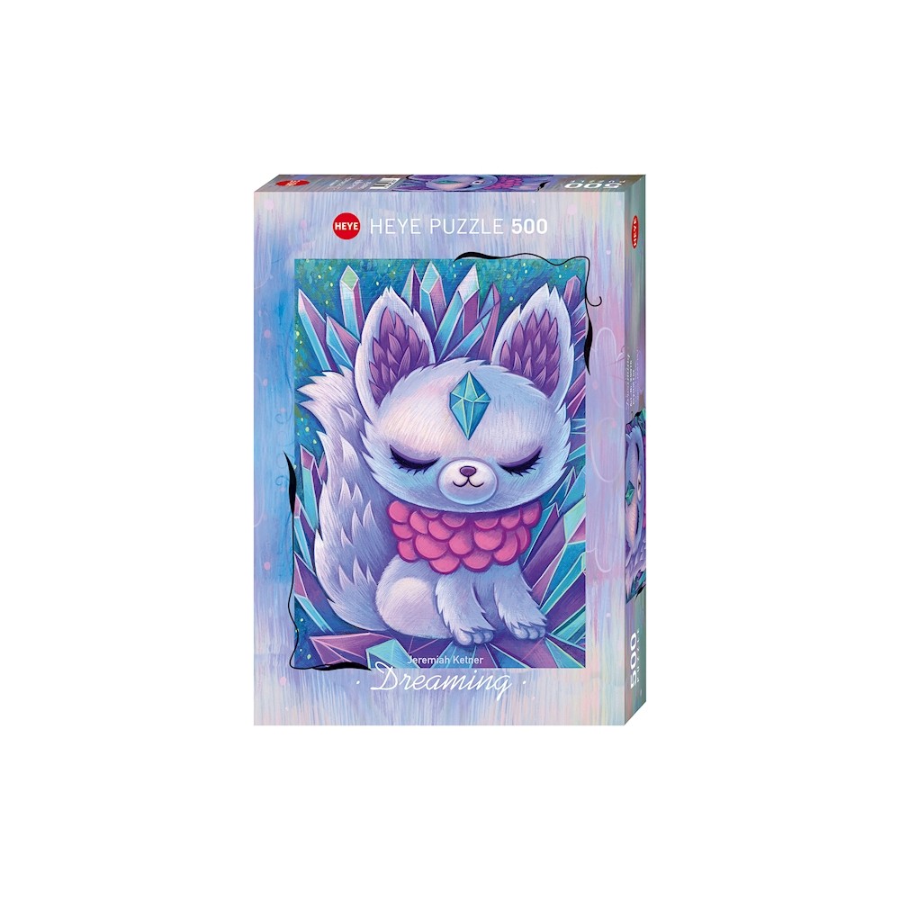 In diesem bezaubernden Puzzle mit 500 Teilen taucht ein anmutiger Fuchs aus einer kristallinen Welt auf.