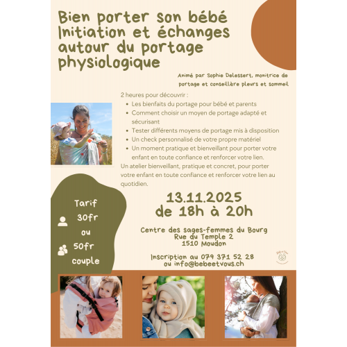 - Private babywearing course given by Sophie Delessert, a PSETUA-certified babywearing instructor.