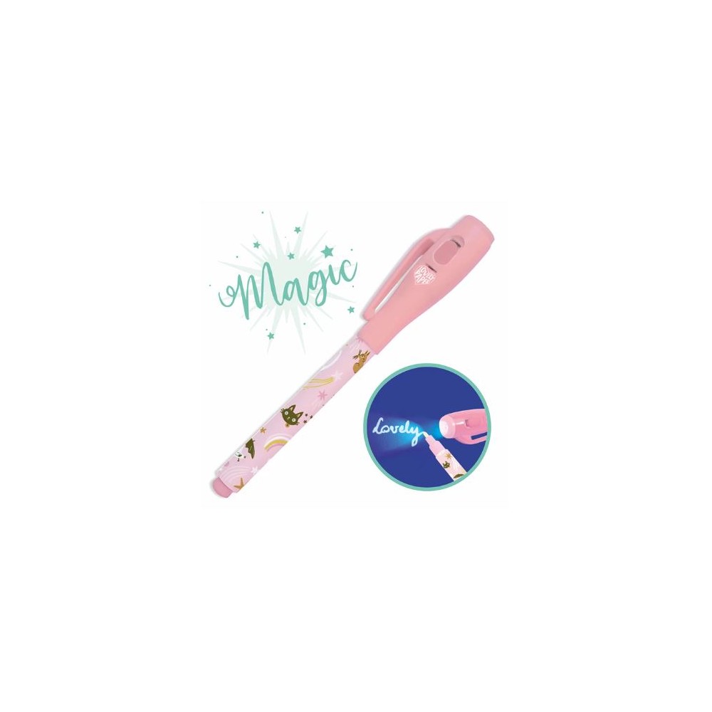 The child writes or draws their secret message, which will only appear when the UV torch shines on the end of the pen.