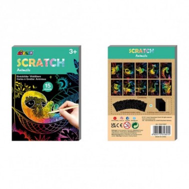 The top layer of black paper is scratched with a wooden stick to create superb effects and designs. The scratched areas reveal the intense, colourful colours of the lower layer.