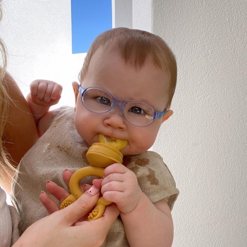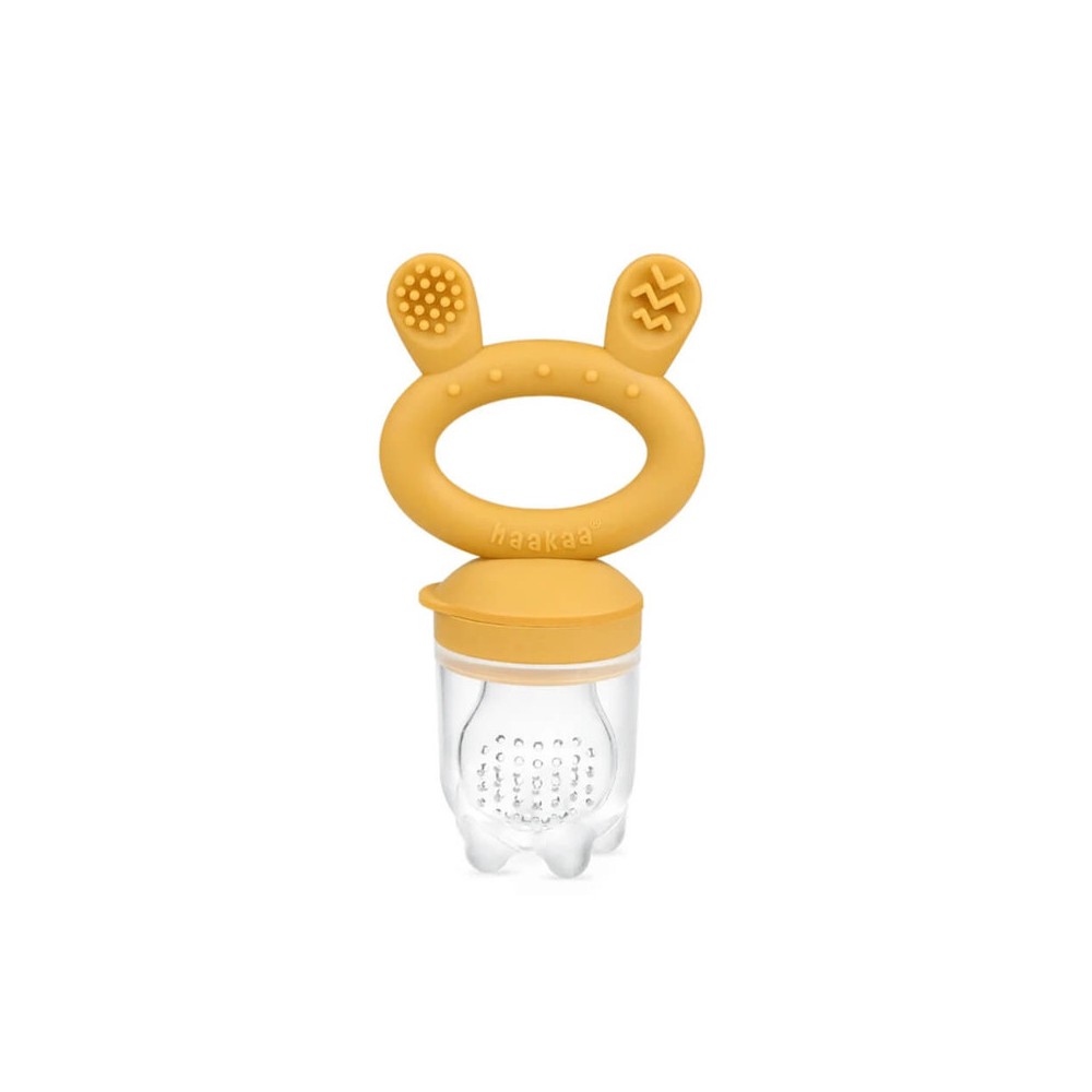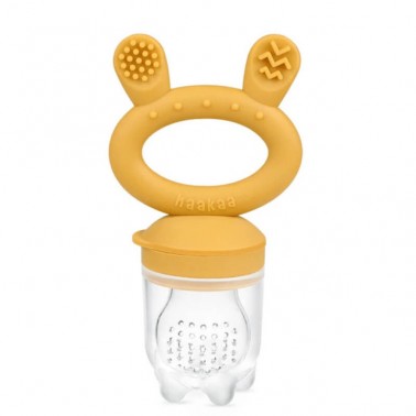 A product made from 100% natural food-grade silicone that has two functions: a nibbler for solid foods and a teething ring.