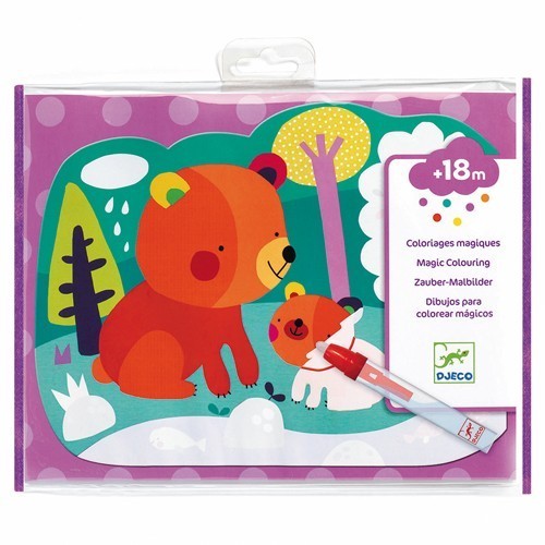 The adult fills the pen with water. The child colours to bring out the colours in the colouring.