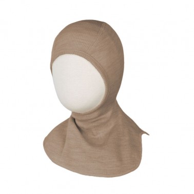 The balaclava-shaped hat is made from merino wool knit and hugs the child's head perfectly, covering the ears well and coming down far enough to cover the neck.