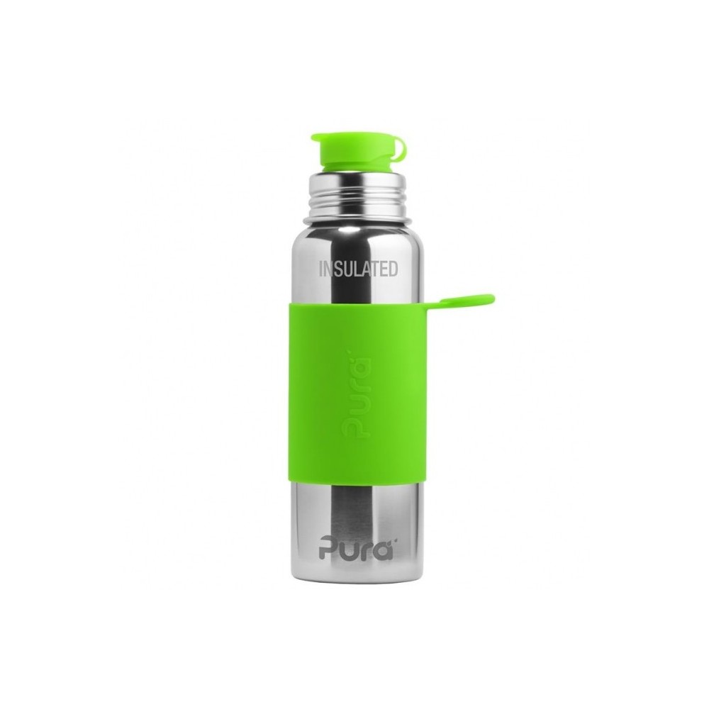 The bottle comes with a silicone sports cap. BPA-free.
