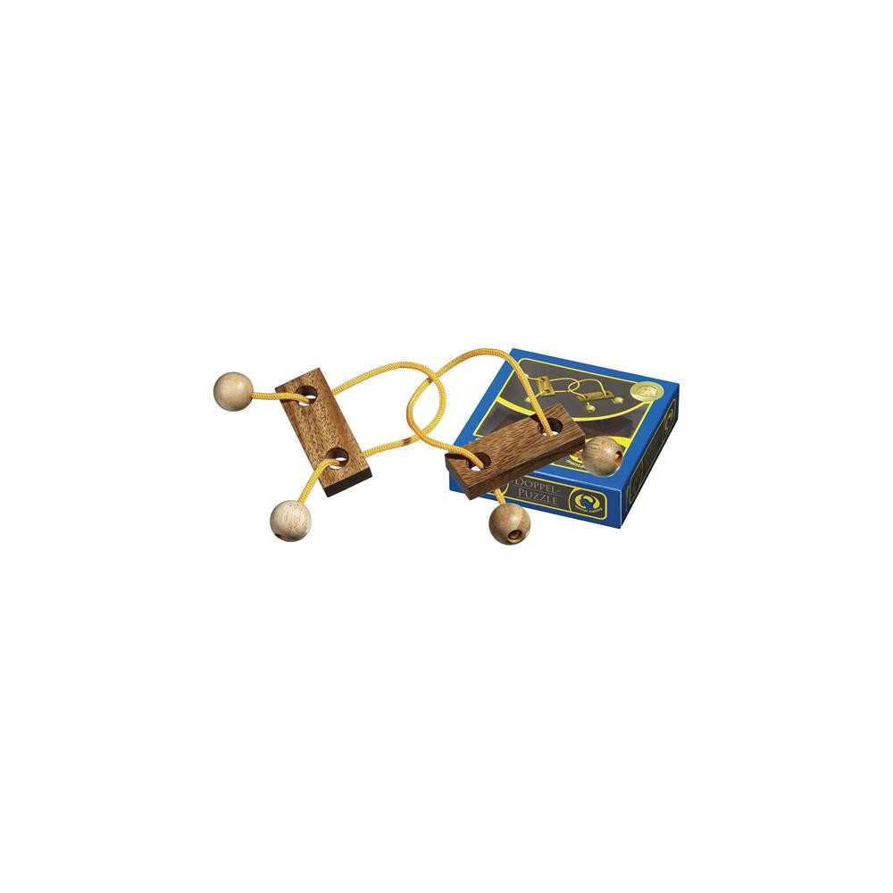 Deux pièces de bois sont reliées par une cordelette. Vous aurez besoin de beaucoup d'habileté et de patience pour les séparer.
