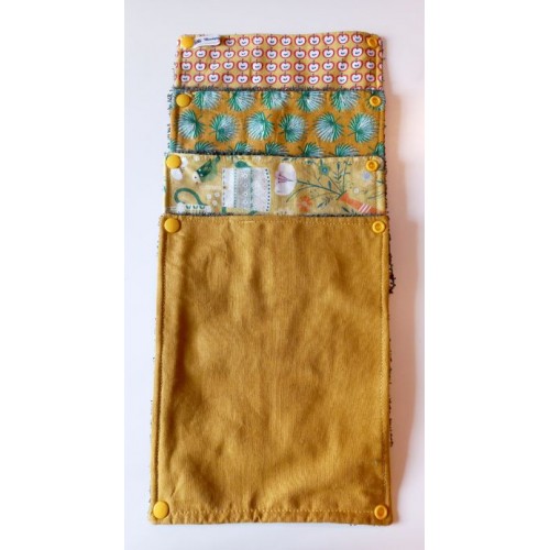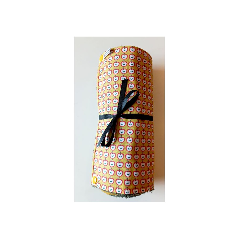 L'essuie-tout lavable est composé de 8 feuilles de 25 x 18cm toutes attachées avec un bouton pression. Un côté coton uni ou à motif et un côté en tissus éponge.