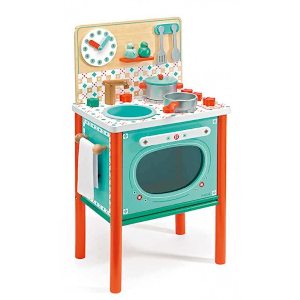 Avec la cuisinière Léo, votre enfant développera son imagination toutes en imitant les grands à la confection des repas. Avec des accessoires faciles à prendre en main.
