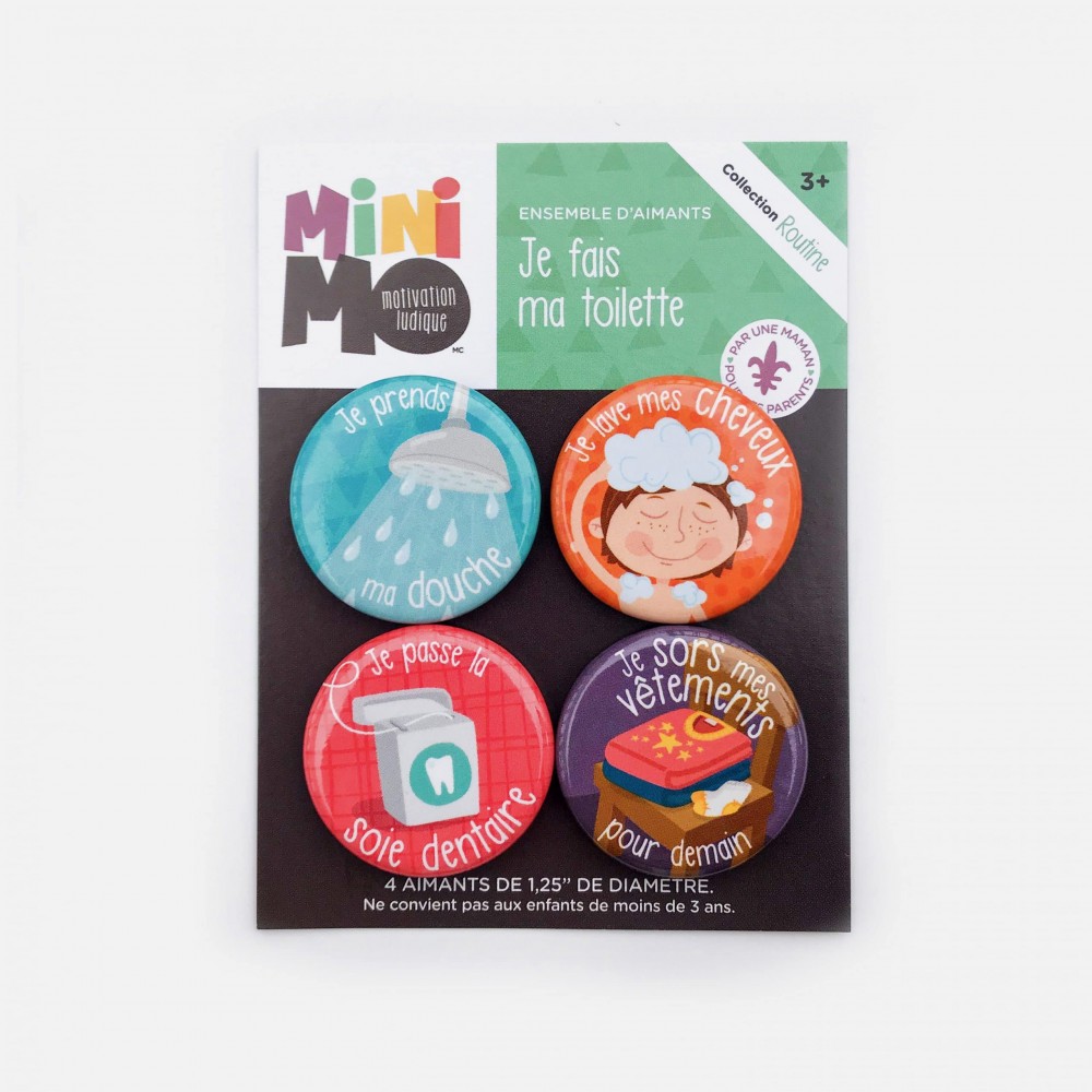 Les petits aimants, agrémentés d’illustrations attachantes, sauront rendre la routine du soir et du matin beaucoup plus amusante pour toute la famille. Utilise-les dans l’ordre qui convient à ta maisonnée, implique ton mini et laisse-le glisser l’aimant avec fierté lorsque la tâche est accomplie!