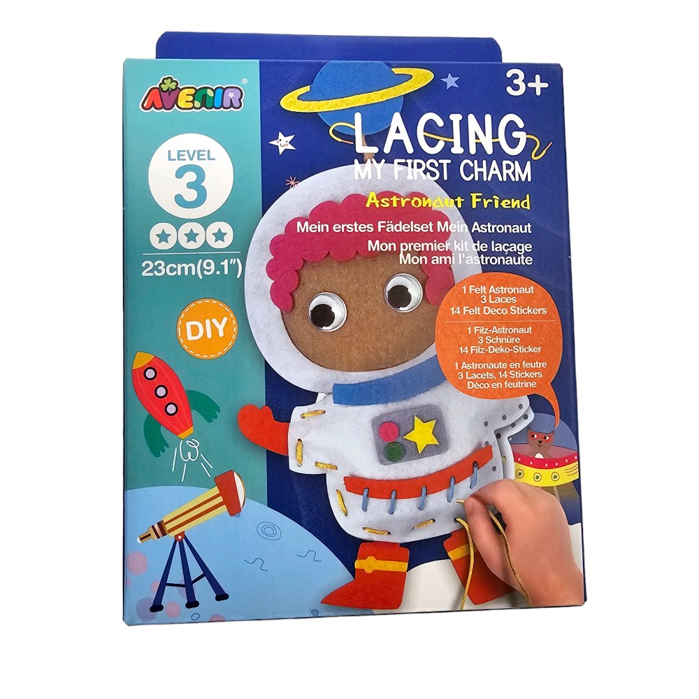 Avec ce kit de couture, les petits artistes de la couture peuvent créer différents animaux en feutre sur le thème des astronautes. Le kit contient tout le matériel nécessaire pour se lancer : pièces de feutrine prédécoupées, rembourrage, fil et instructions illustrées.