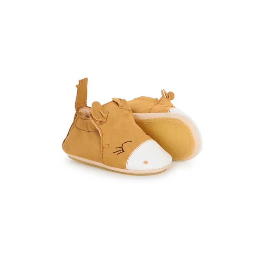 Solides et résistants, ils épousent parfaitement les pieds des plus petits et leur garantissent un confort de qualité. Ils se dotent d'une semelle intérieure en hévéa naturel pour le confort et l'isolation. Elle est amovible pour un nettoyage facile. La semelle extérieure est quant à elle en cuir velours avec un patin en crêpe antidérapant.