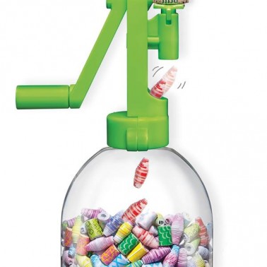 Divertitevi con il nostro strumento appositamente progettato per creare perline di carta. Basta inserire nell'attrezzo strisce di giornale o di rivista e girare la manovella. Riciclate una bottiglia di plastica e avvitatela sull'attrezzo per conservare le perline. Si può anche usare come decorazione.