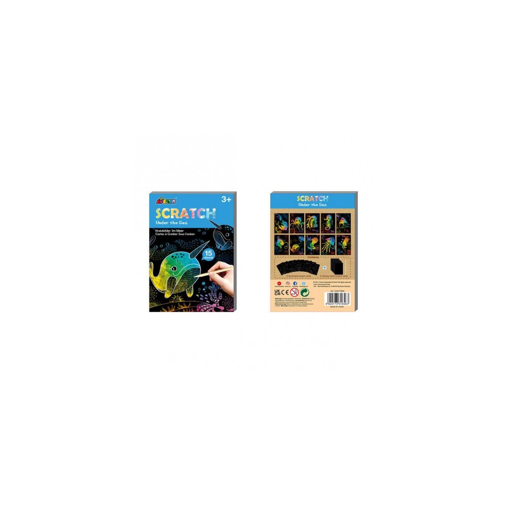 Lo strato superiore di carta nera viene graffiato con un bastoncino di legno per produrre effetti e disegni superbi. Le aree graffiate rivelano i colori intensi e colorati dello strato inferiore.