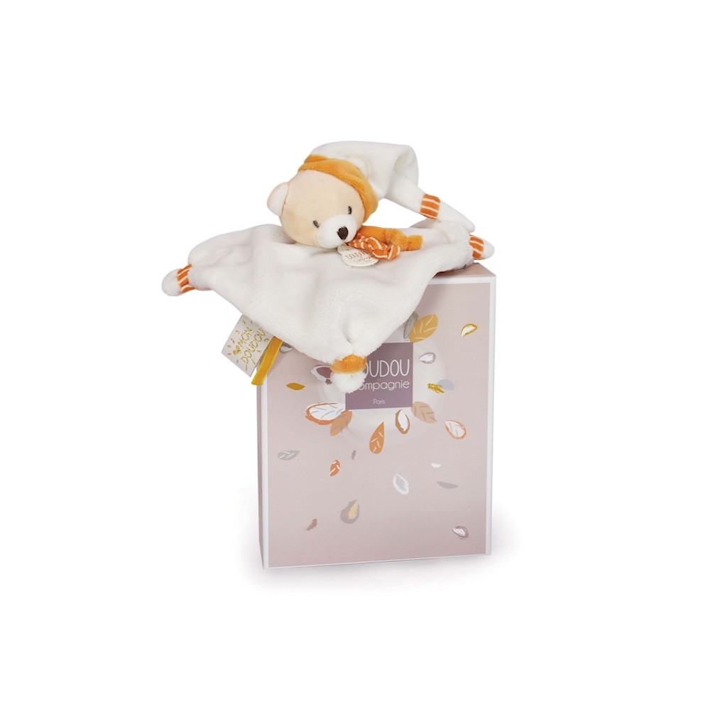 Una graziosa scatola di cartone con un morbido peluche che accompagna il bambino fin dalla nascita.