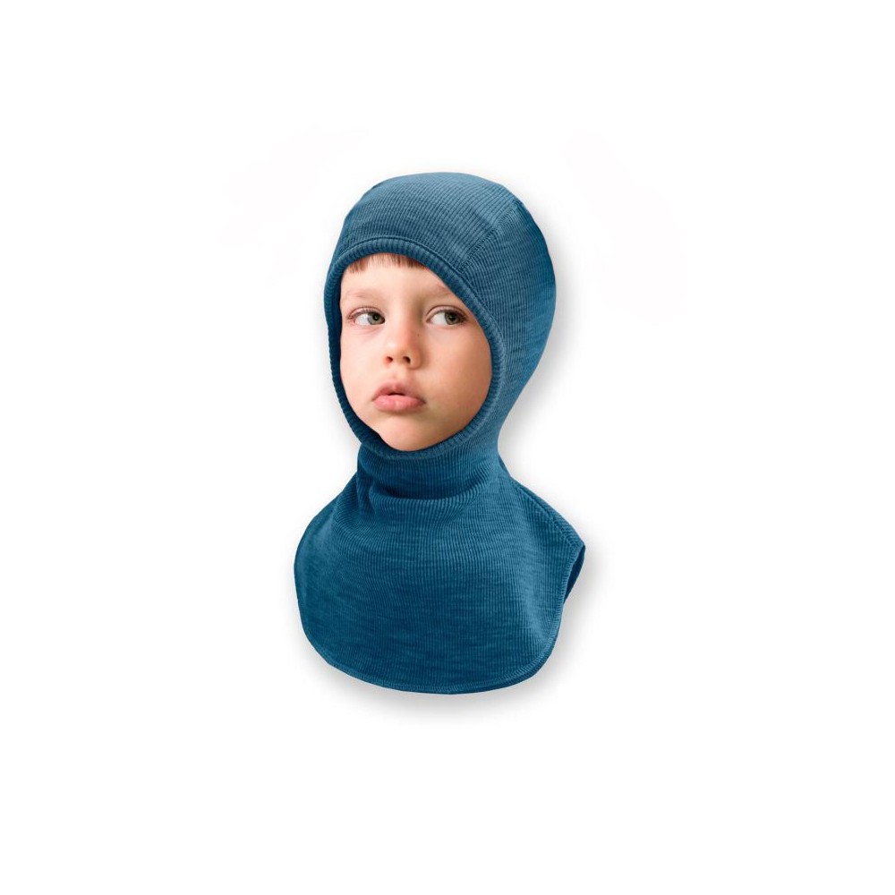 Il cappello a forma di passamontagna è realizzato in maglia di lana merino e abbraccia perfettamente la testa del bambino, coprendo bene le orecchie e scendendo fino a coprire il collo.