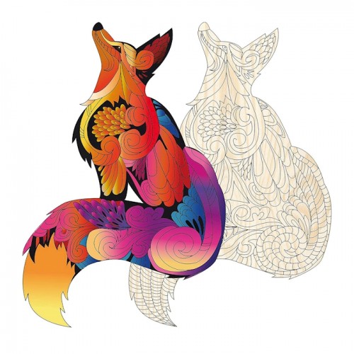 In questo puzzle di legno, 143 pezzi prendono vita, formando un'immagine di animali colorati che si uniscono per creare una volpe.