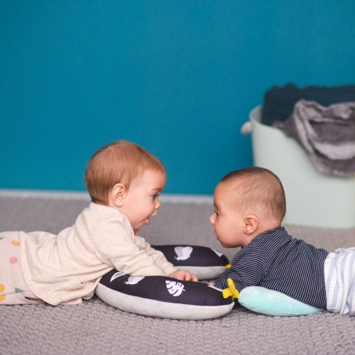 Il cuscino per il pancino, dal design ergonomico, può essere utilizzato per due fasi di sviluppo e fornisce un supporto per i bambini sdraiati sul pancino. Il primo livello di sviluppo aiuta il bambino a tenere i gomiti uniti e a scoprire i motivi ad alto contrasto. Il secondo livello di sviluppo sostiene il bambino all'altezza del petto, consentendogli di muovere liberamente le braccia.