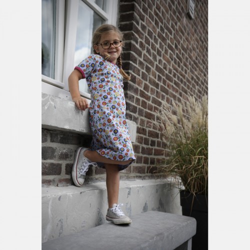 Un abito in jersey fatto a mano dalla stilista CréaBee. Con piccoli fiocchi per divertimento.
